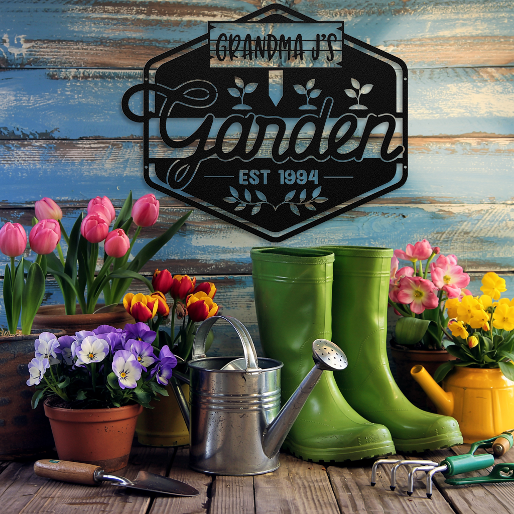Accent your bit of earth with our beautiful garden sign! Thanks to a durable powder coating, this metal wall art is ready to withstand the elements and bring a touch of charm to your garden. Personalized with your name and a year, this lovely sign will help your garden feel more like home!